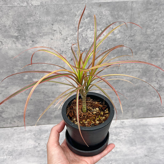 【現品販売】ドラセナ コンシンネ レインボー 3号 プラスチック鉢 黒 受け皿付き BLACK PLASTIC POT ねこチップ 3