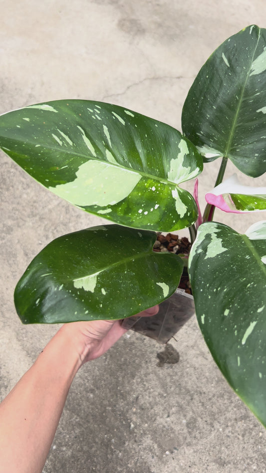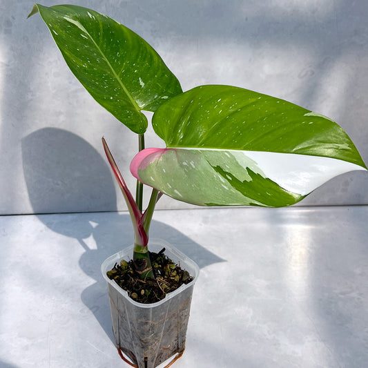 【現品販売】ピンク斑入り フィロデンドロン ホワイトプリンセス 3号 ネガミエル 透明 スリット鉢 プラ鉢 ねこチップ