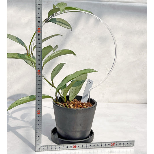 【現品販売】ホヤ プビカリクス シルバーゴースト Hoya Pubicalyx silver ghost 希少 レア BLACK PLASTIC POT 4号 ねこチップ クリア トレリス 支柱 B