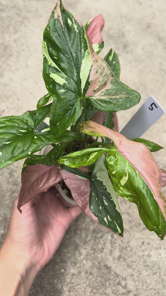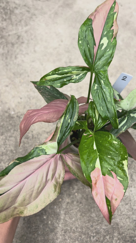 【現品販売】シンゴニウム ピンクサーモン 透明鉢 ネガミエル ねこチップ 3号 プラ鉢 希少