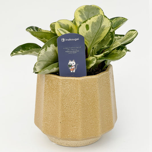 【現品販売】ペペロミア オブツシフォリア レモンスカッシュ 4号 陶器鉢 おしゃれ ねこチップ 斑入り