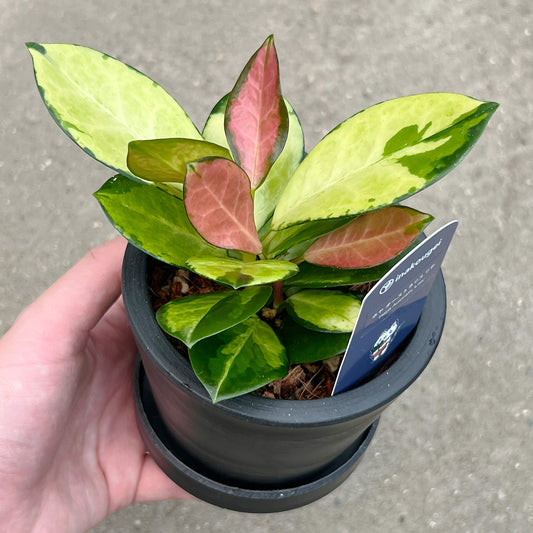 【現品販売】ホヤ オーストラリスリサ 3号 BLACK PLASTIC POT 黒 プラ鉢 受け皿付き ねこチップ