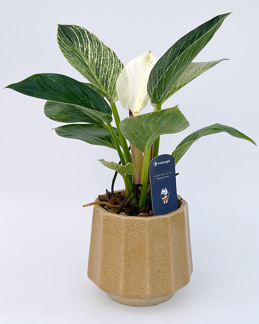 【現品販売】フィロデンドロン バーキン 4号 陶器鉢 おしゃれ ねこチップ 斑入り