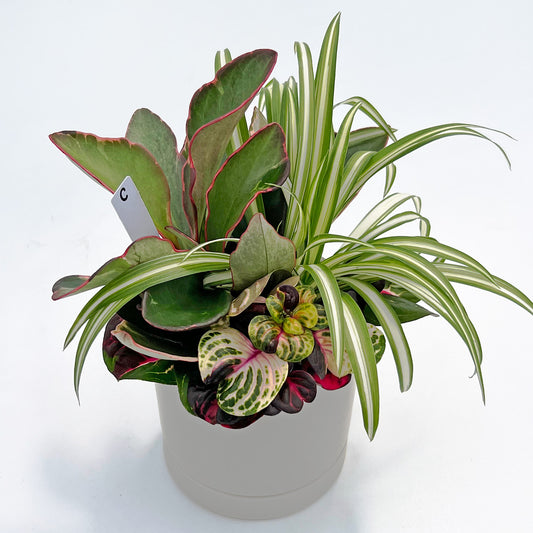 C【現品販売】観葉植物 寄せ植え 4号 陶器鉢 受け皿付き ねこチップ
