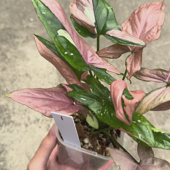 【一点もの販売】【ねこチップ】シンゴニウム レッドスポットトリカラー 透明鉢 ネガミエル ねこチップ 3号 プラ鉢 希少 1