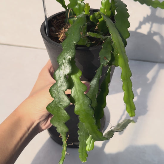 【一点もの販売】【ねこチップ】フィッシュボーンカクタス エピフィルム BLACK PLASTIC POT 4号 受け皿付き 2