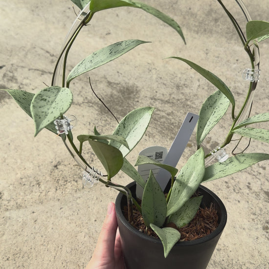 【一点もの販売】【ねこチップ】ホヤ プビカリクス シルバーゴースト Hoya Pubicalyx silver ghost 希少 レア BLACK PLASTIC POT 4号 ねこチップ クリア トレリス 支柱 1
