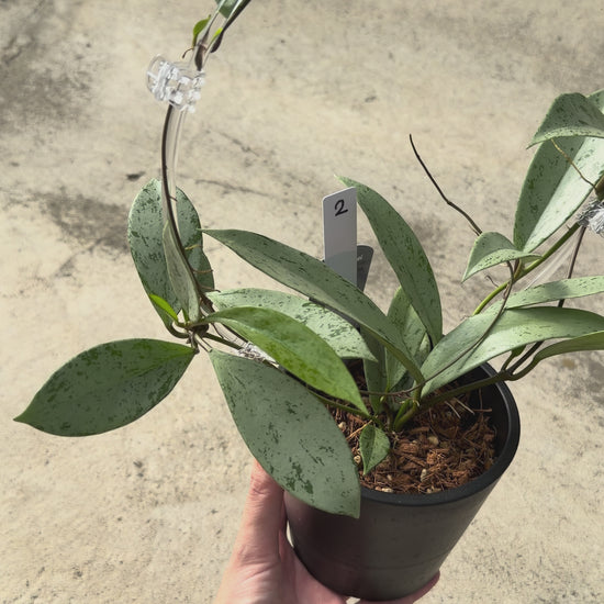 【一点もの販売】【ねこチップ】ホヤ プビカリクス シルバーゴースト Hoya Pubicalyx silver ghost 希少 レア BLACK PLASTIC POT 4号 ねこチップ クリア トレリス 支柱 2