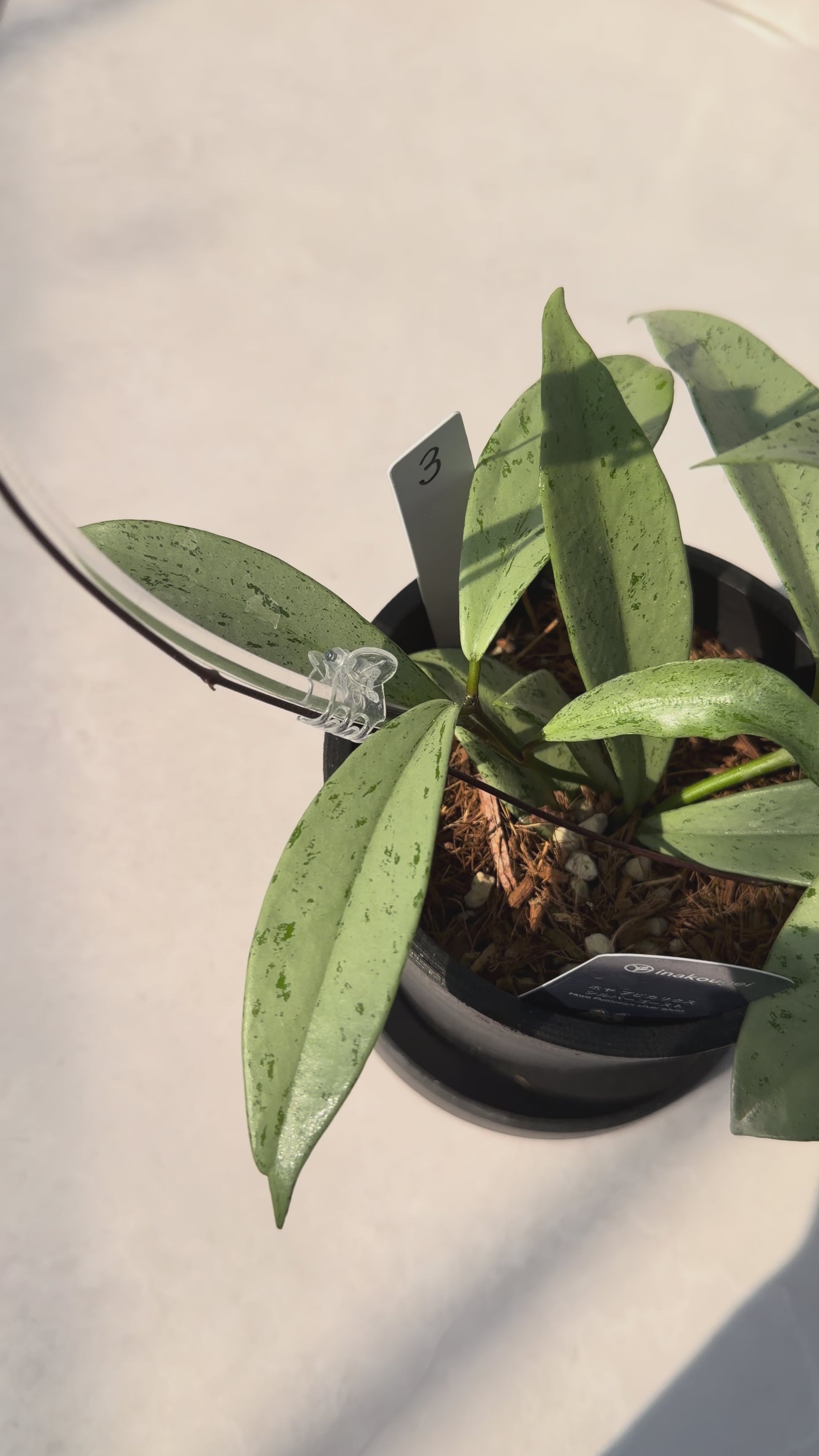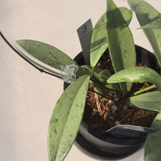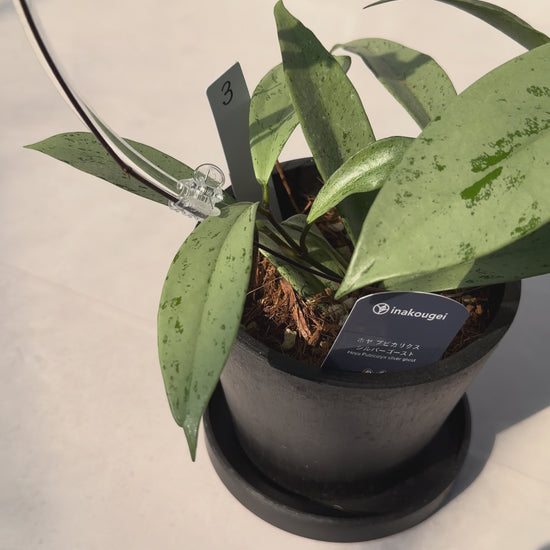 【一点もの販売】【ねこチップ】ホヤ プビカリクス シルバーゴースト Hoya Pubicalyx silver ghost 希少 レア BLACK PLASTIC POT 4号 ねこチップ クリア トレリス 支柱 3