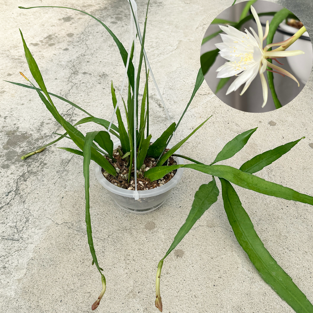 【一点もの販売】【ねこチップ】花芽付き エピフィラム・プミラム( 姫月下美人)5号吊りポット ネガミエルAIR(直径約15cm)