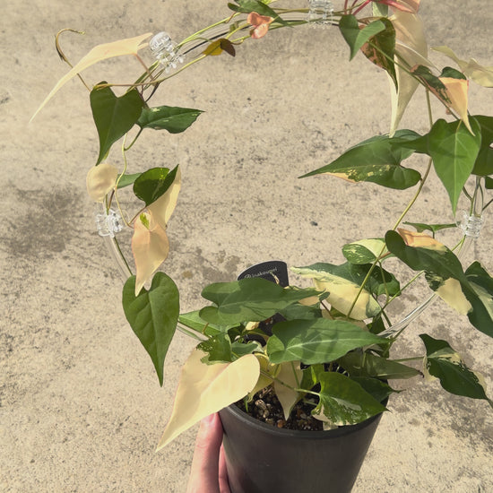 おすすめポイント:白やピンクの斑がとても美しいファロピアマルチフローラ。支柱仕立てで華やかに仕上げるのに憧れておりました✨繊細そうな茎の細さですが水切れに気をつければ育てやすい植物です♡