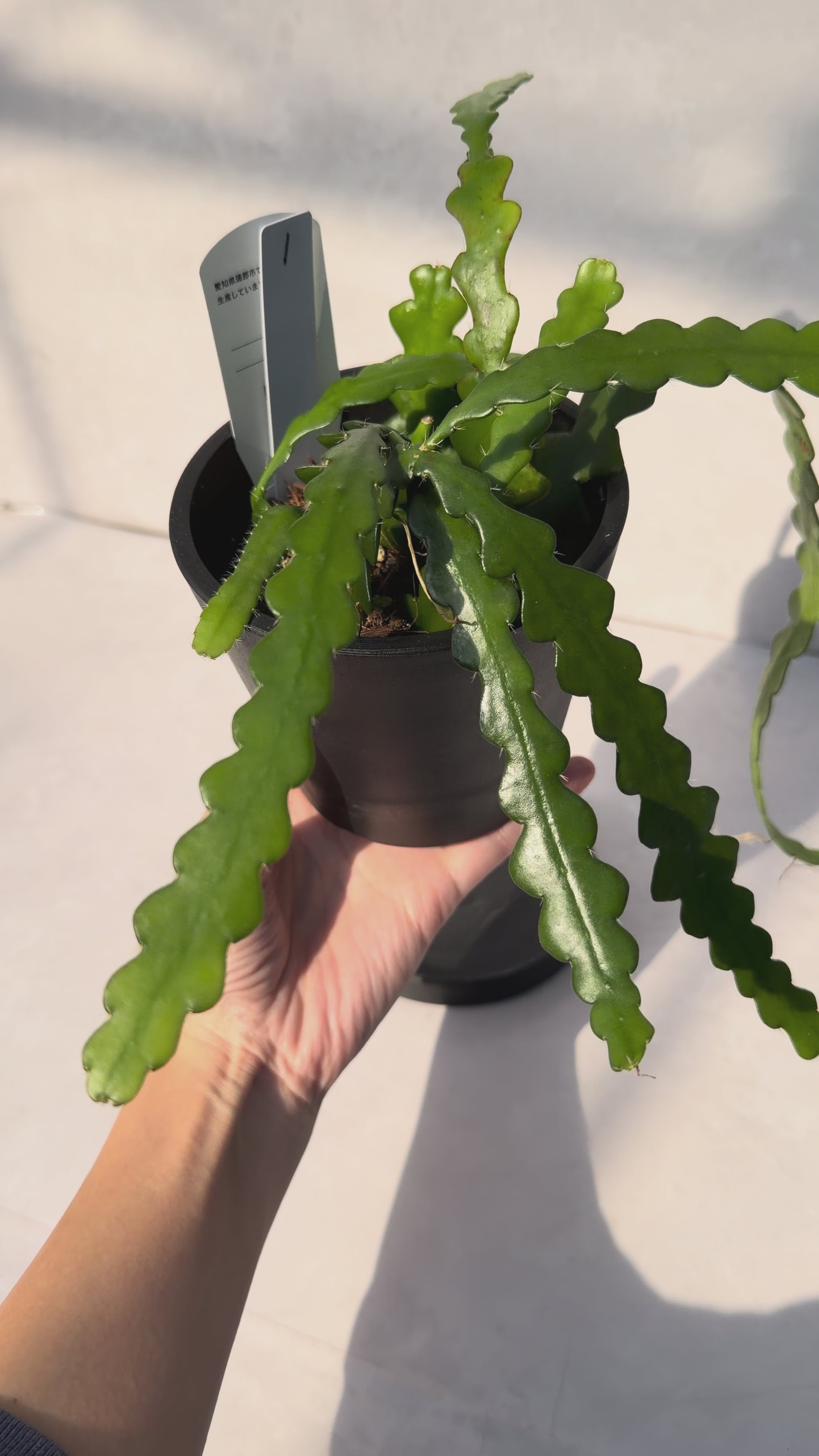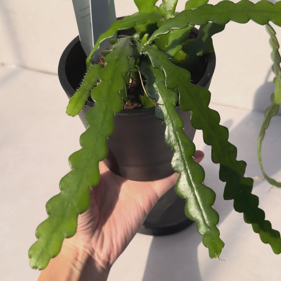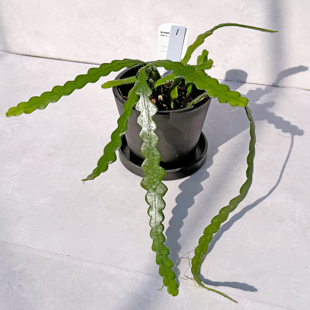 【一点もの販売】【ねこチップ】フィッシュボーンカクタス エピフィルム BLACK PLASTIC POT 4号 受け皿付き 1