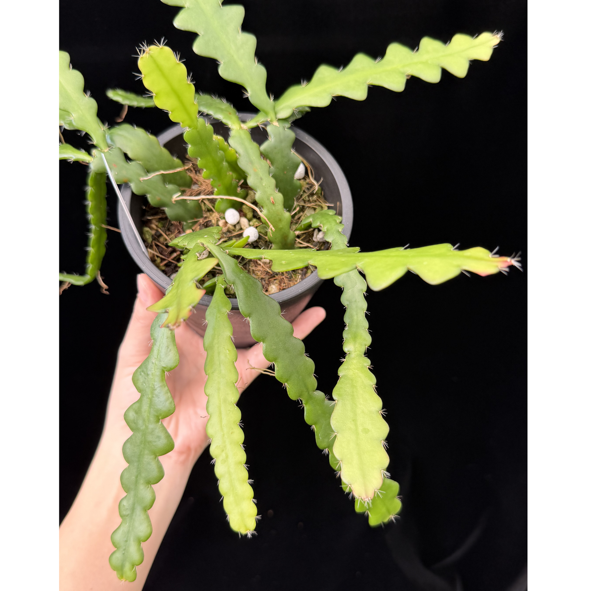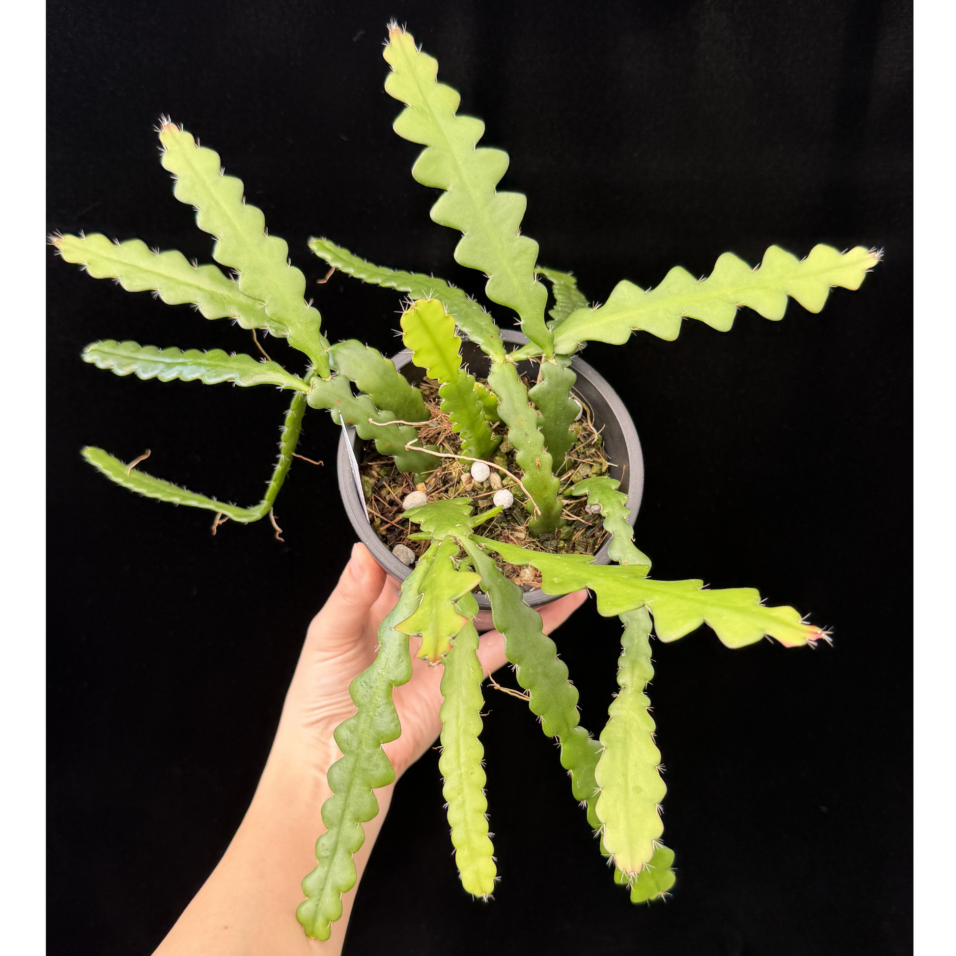 【一点もの】フィッシュボーンカクタス エビフィラム アングリガー 4号 プラスチック鉢 BLACK PLASTIC POT 受け皿付き 8