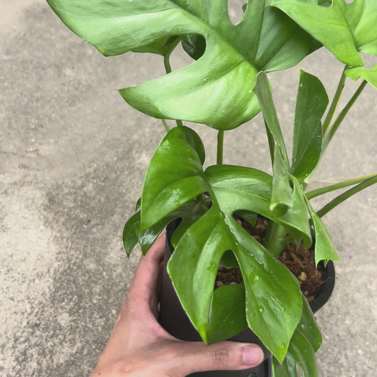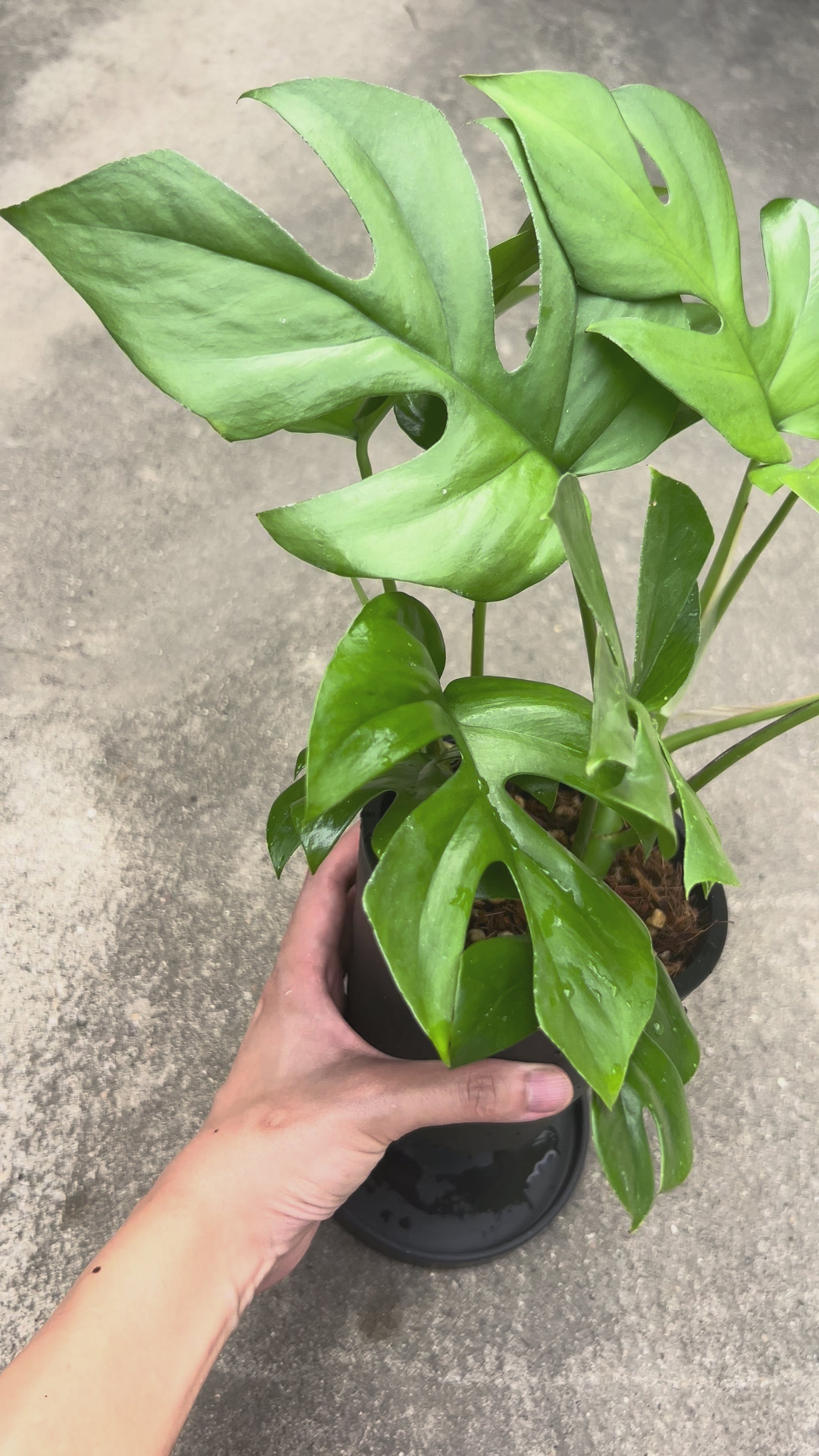 【一点もの販売】【ねこチップ】ヒメモンステラ 4号 BLACK PLASTIC POT 受け皿付き ねこチップ栽培