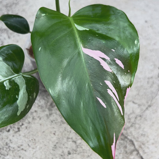 【現品販売】【ねこチップ】ピンク斑入り フィロデンドロン ホワイトプリンセス 3号 ネガミエル 透明 スリット鉢 プラ鉢 ねこチップ