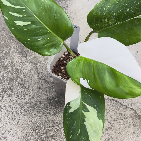 【現品販売】【ねこチップ】フィロデンドロン ホワイトプリンセス 3号 ネガミエル 透明 スリット鉢 プラ鉢 ねこチップ B