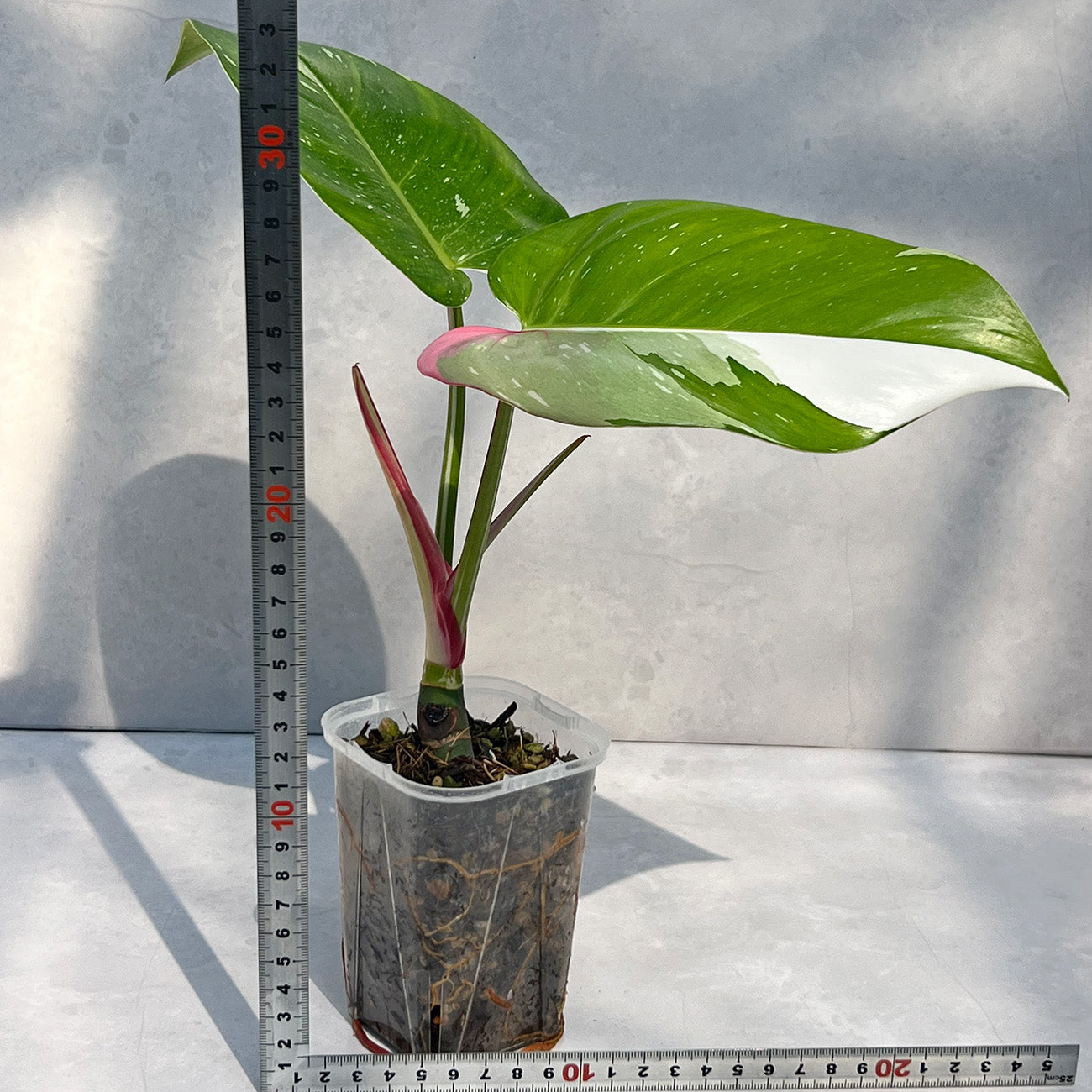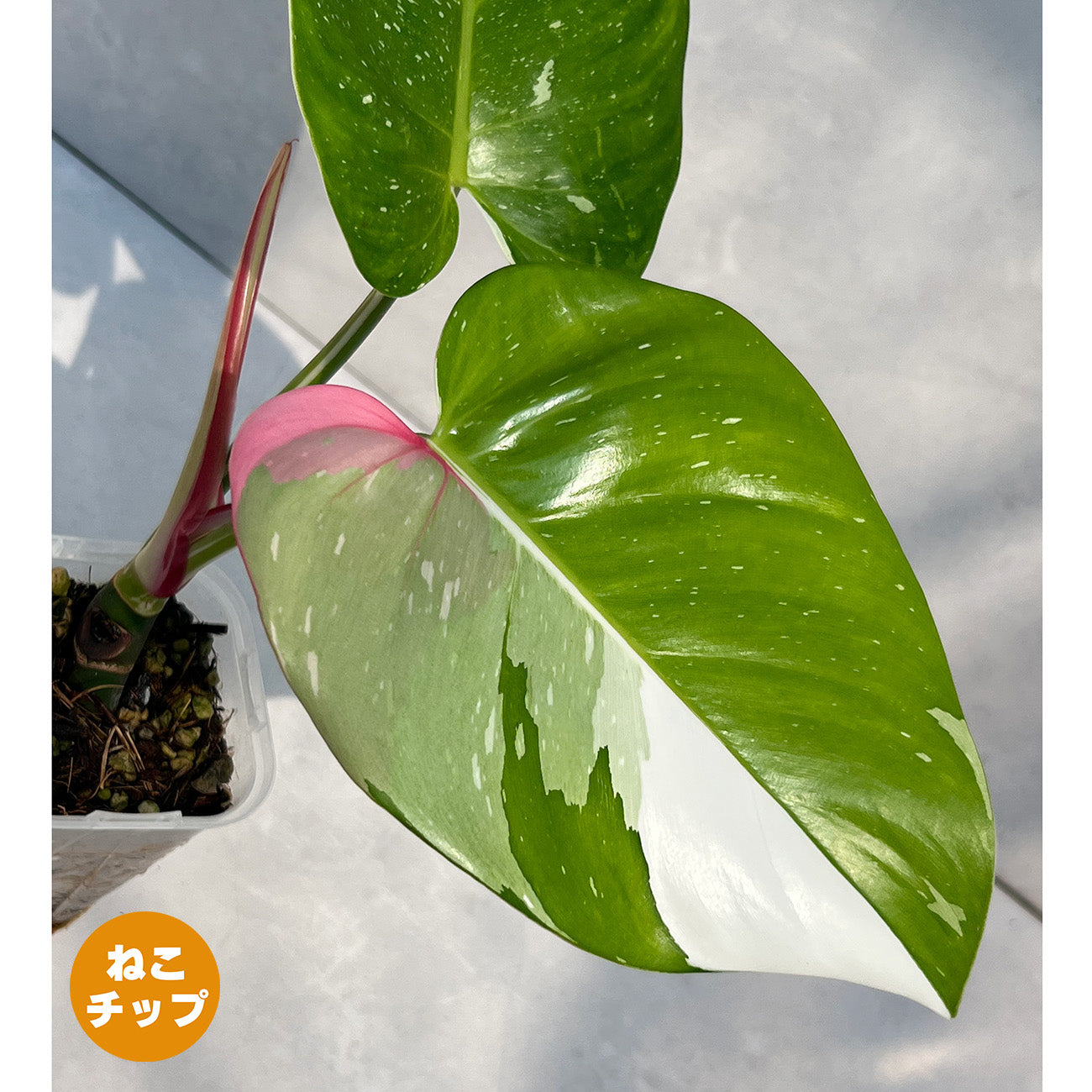 【現品販売】ピンク斑入り フィロデンドロン ホワイトプリンセス 3号 ネガミエル 透明 スリット鉢 プラ鉢 ねこチップ