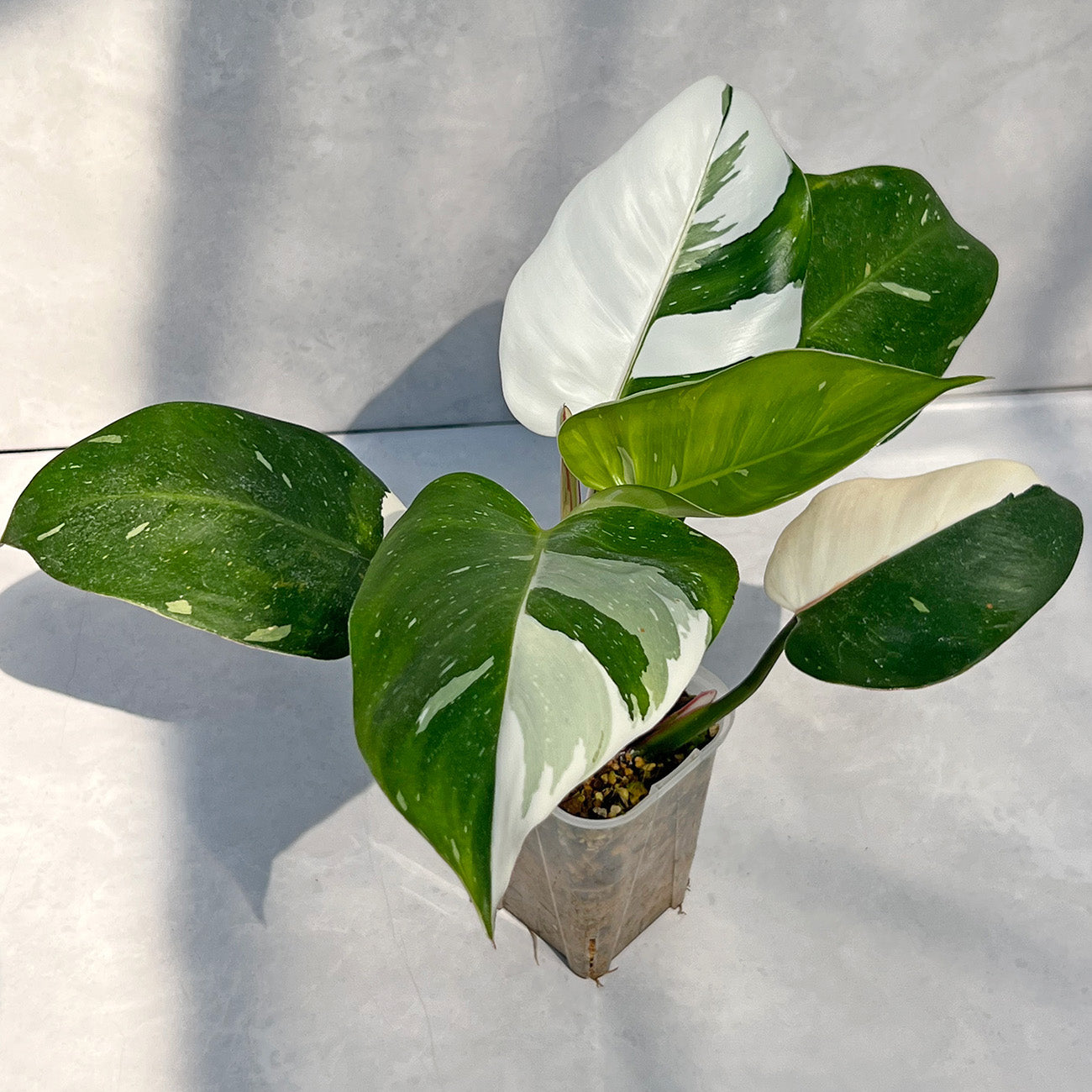 【現品販売】フィロデンドロン ホワイトプリンセス 3号 ネガミエル 透明 スリット鉢 プラ鉢 ボタニソイル